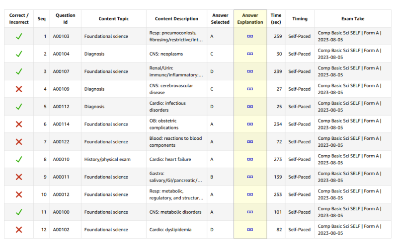 - Sort and filter questions on the Question Details tab of INSIGHTS to find specific explanations quickly, so you can save time while studying